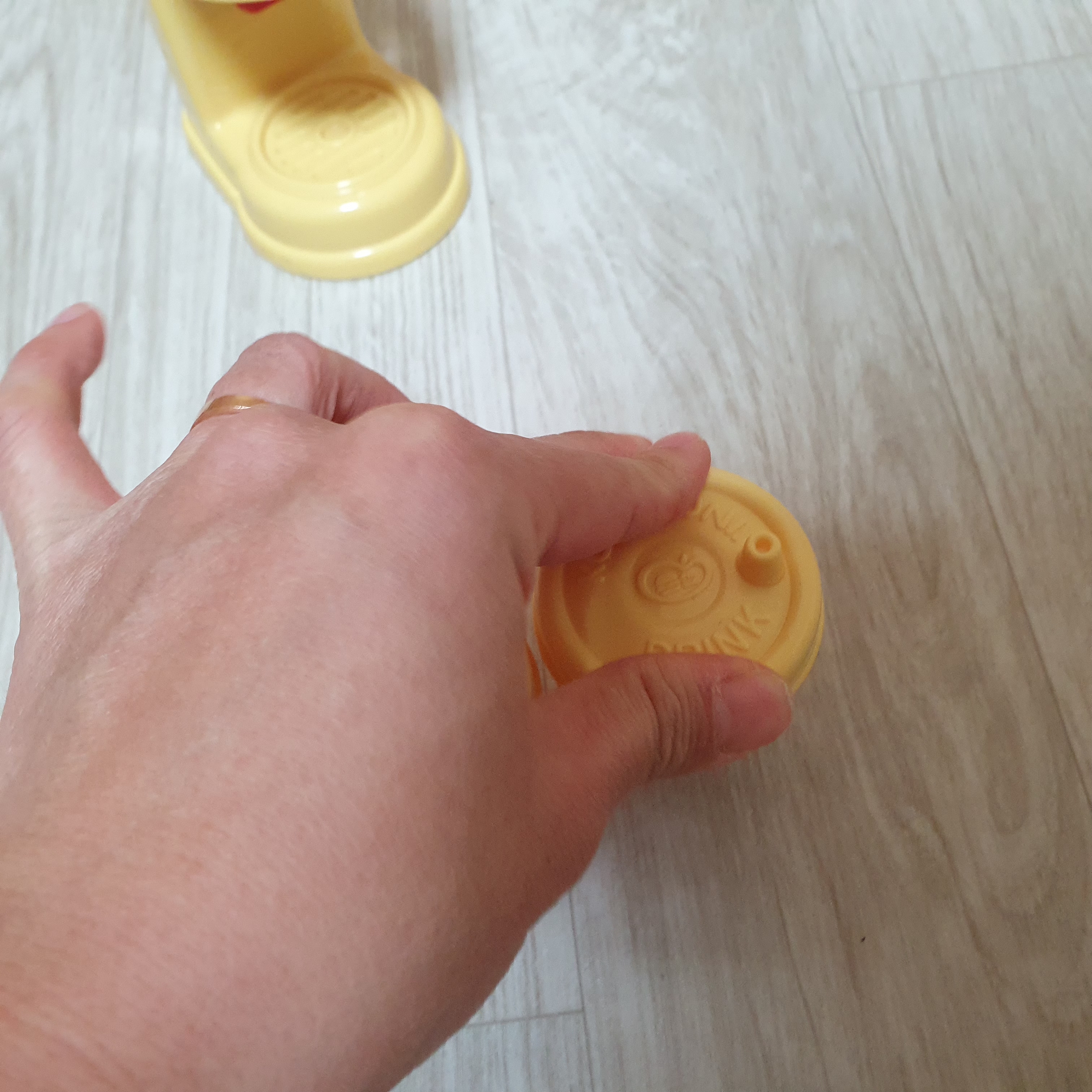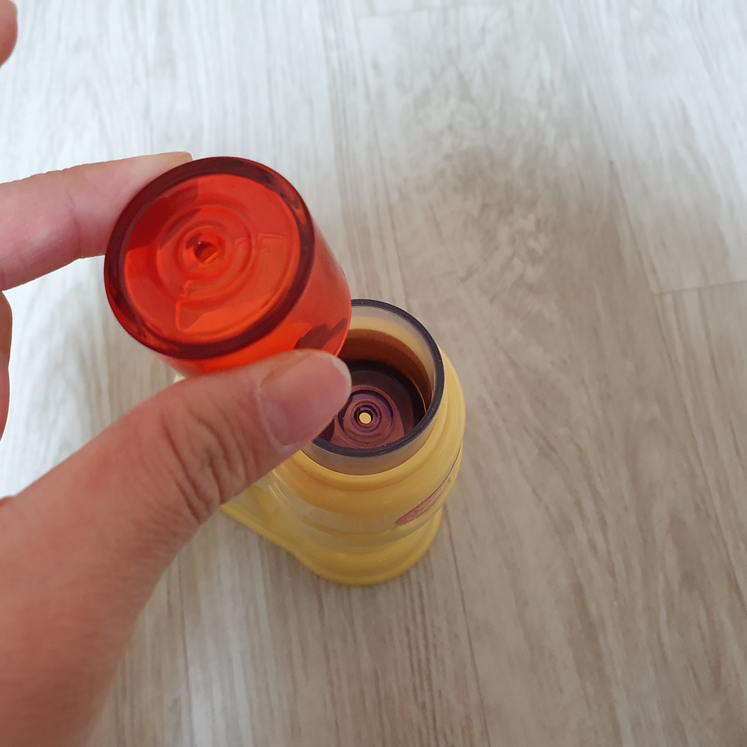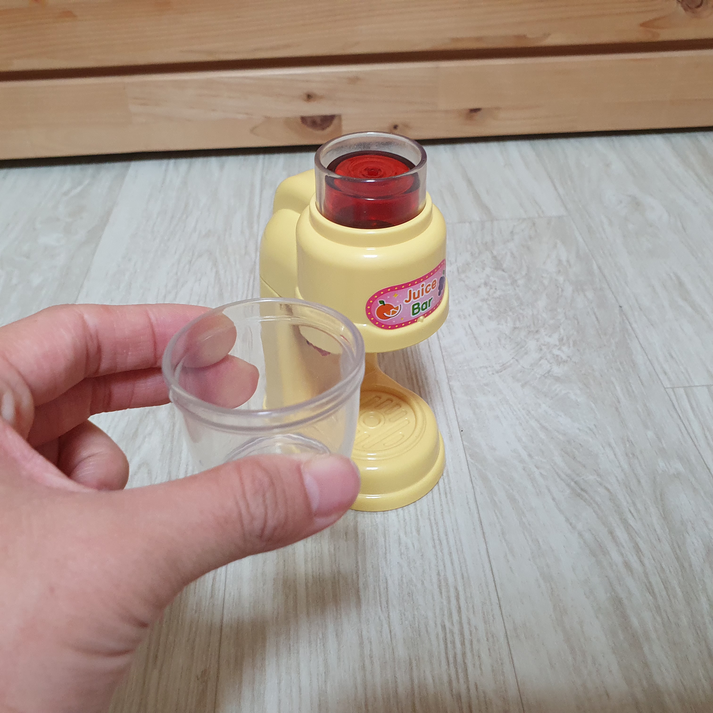 오렌지맛 음료가 담긴 모습이에요. 제가 오렌지맛 주세요. 혹은 포도맛 주세요.라고 주문을 해보았는데요. 실제로 수원 어스네 알라가 주문에 맞게 음료를 가져다주더라고요. 상황 놀이 / 역할 놀이를 좋아하는 아이라면 취향 저격 가능한 장난감인 거 같아요.
